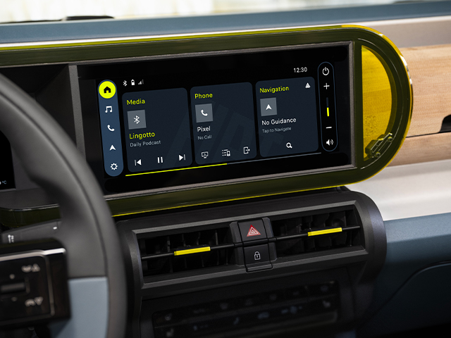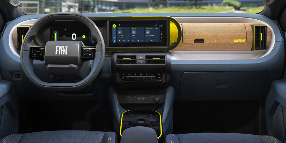 ფართო და მარტივი ფორმის პანელი ზრდის სივრცის შეგრძნებას სალონში, ხოლო მრავალფუნქციური სათავსოები ეხმარება წესრიგის შენარჩუნებაში. Grande Panda აერთიანებს ციფრულ ინოვაციასა და პრაქტიკულ დიზაინს - 10.25''-იანი „დამოკიდებული“ ინფოტეინმენტ ეკრანი ყოველთვის ხელმისაწვდომად არის განთავსებული და უზრუნველყოფს უწყვეტ კავშირსა და ინტუიციურ მართვას. ციფრული ინსტრუმენტების პანელი კი ყველა საჭირო ინფორმაციას რეალურ დროში, მკაფიოდ და ყურადღების გაფანტვის გარეშე აჩვენებს.